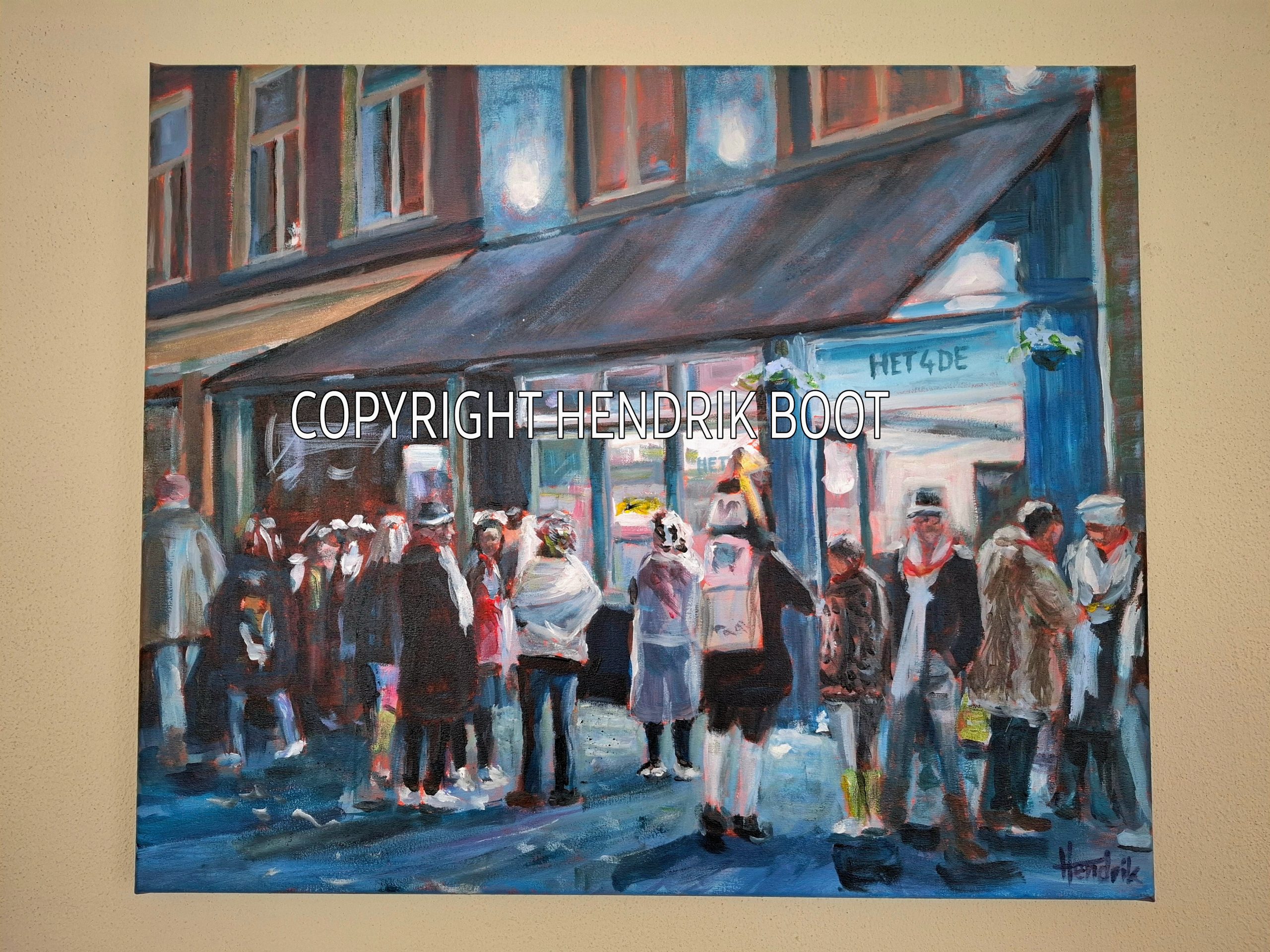 Broodjeszaak Het 4de. 50 x 60 cm. Acrylverf op canvas, € 590